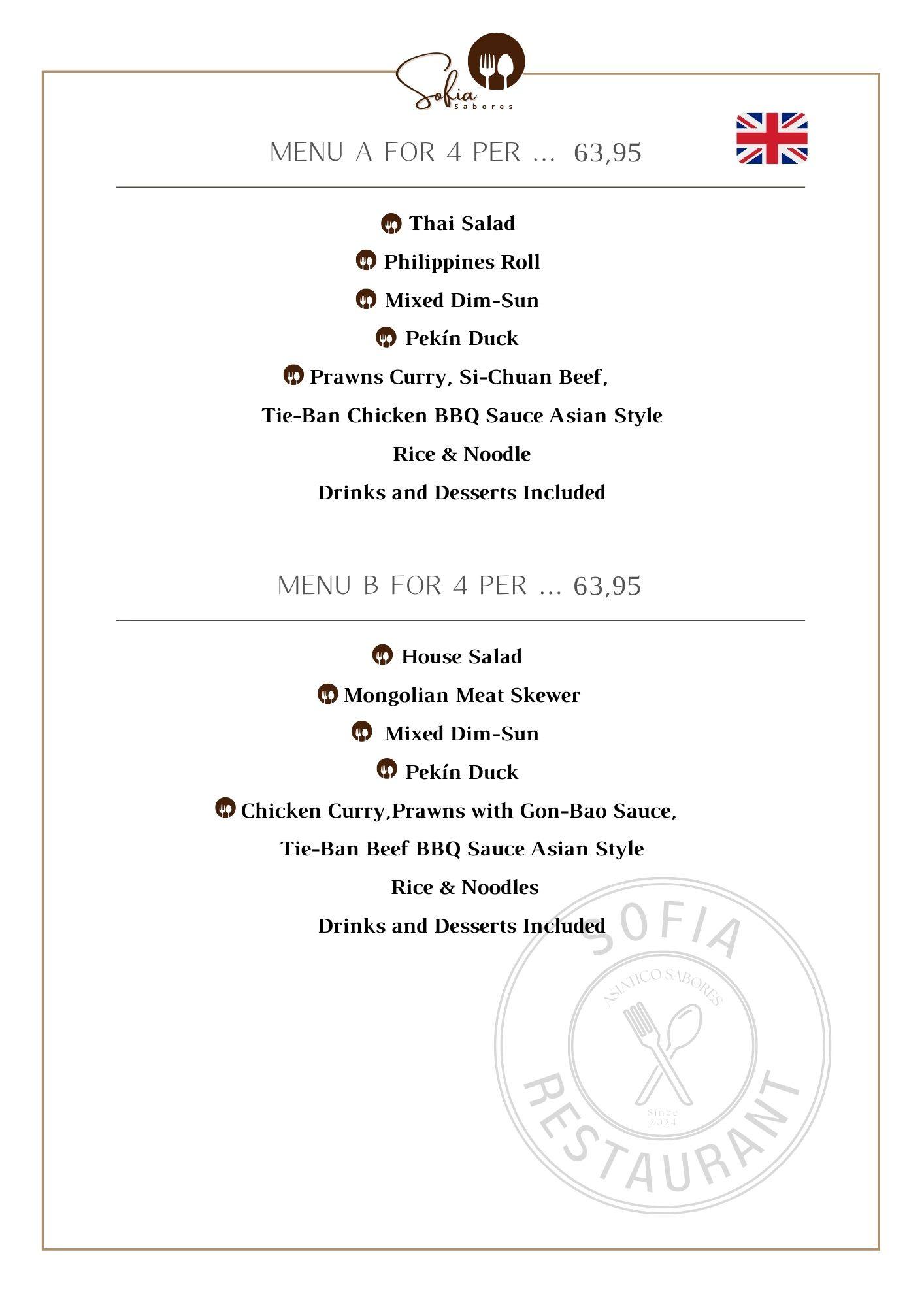 Scopri tutti i nostri Eventi VIVI L'ESPERIENZA JUNO SUSHI SFOGLIA IL CALENDARIO E SCEGLI COME FARTI SORPRENDERE Sofia Asiatico Sabores Menu A la carte menu